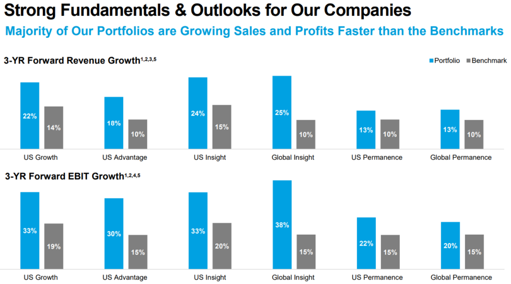 Después estiman el potencial de crecimiento secular, priorizando crecimiento orgánico, altos retornos y un binomio riesgo-recompensa atractivo.