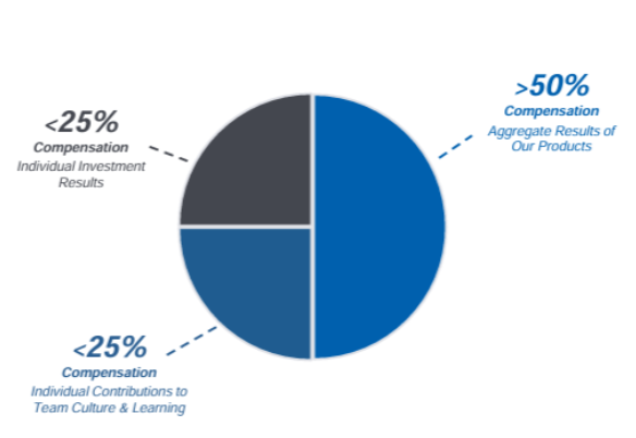 La alineación de intereses es fuerte: la compensación está orientada a resultados de largo plazo, prima el desempeño colectivo frente al individual y los gestores co-invierten en las propias estrategias.